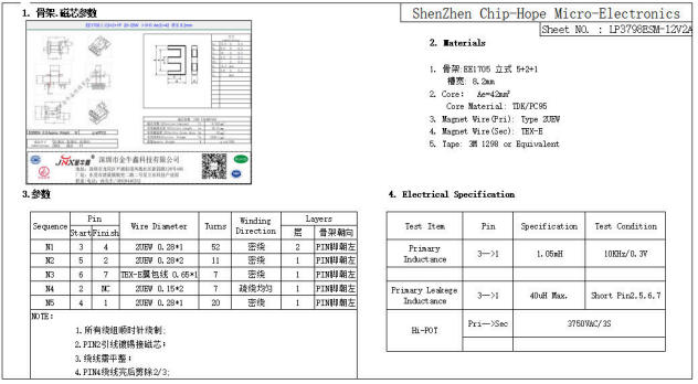 变压器:按文档 4 条参数绕制,漏感 <25µH,层间加 3M 1298 胶带