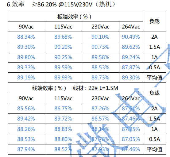 115V/2A 板端 90.2%,230V/2A 90.73%,比传统肖特基方案提升 3-4%,整机温升下降 8℃。输出纹波